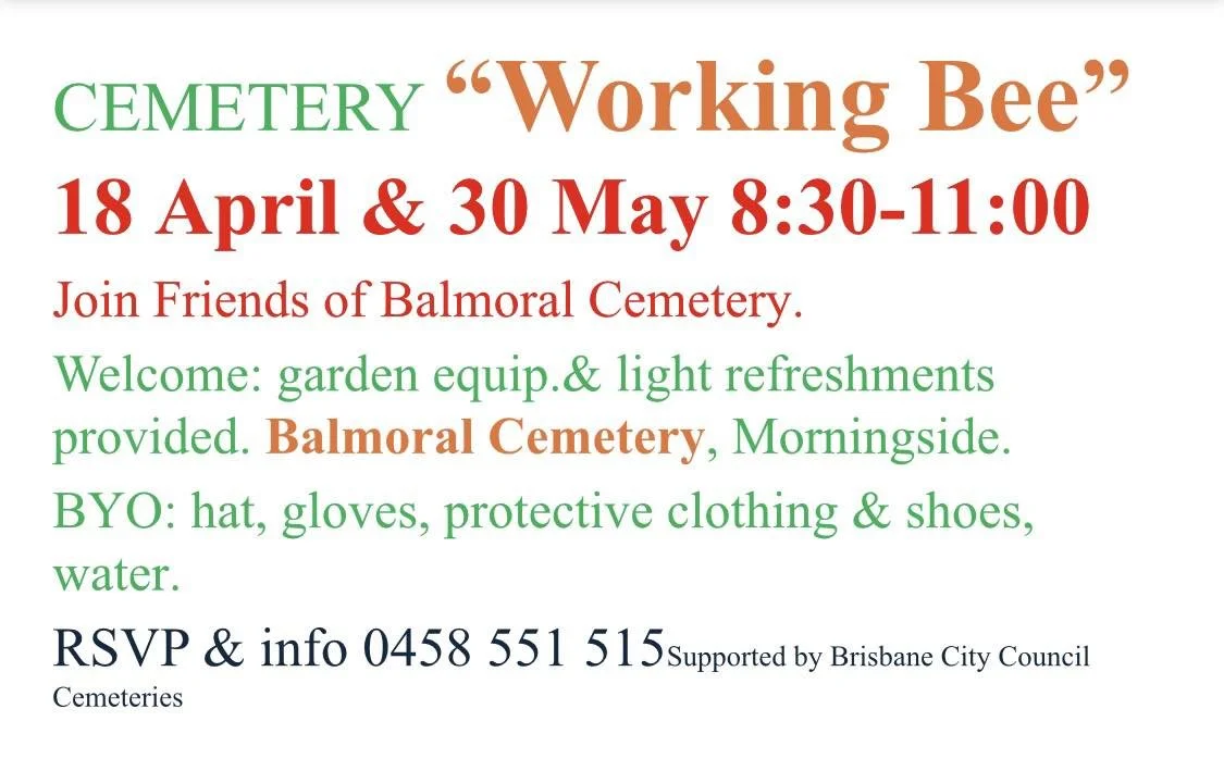 Working Bees in Balmoral Cemetery 18 April and 30 May 2026
