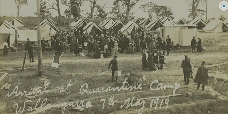 banner image: Groups of people on arrival at the Wallangarra Quarantine camp, May 1919 (photographer unknown)Image number: 31880-0001-0003 SLQ